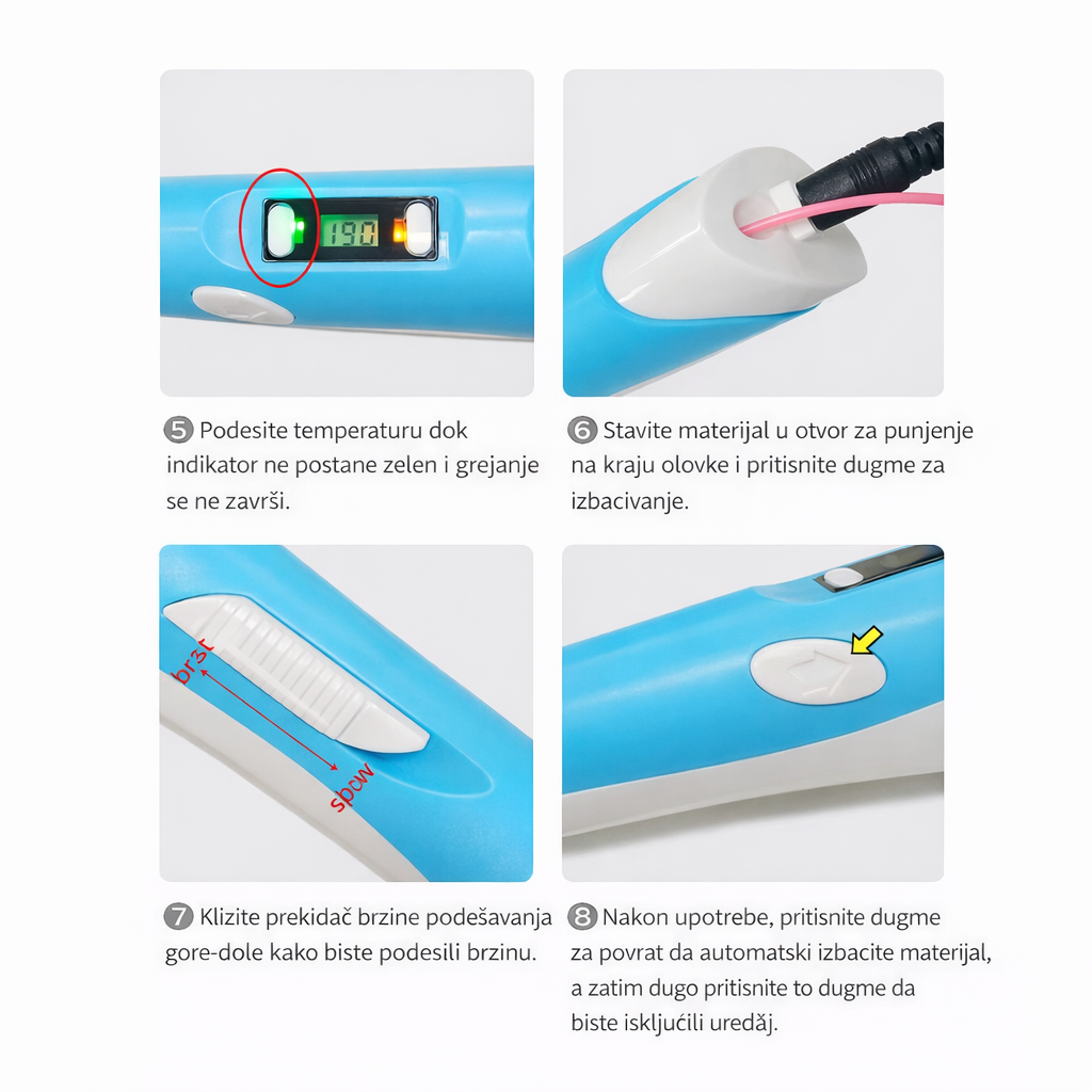 🖍️ 3D olovka omogućava crtanje i oblikovanje u prostoru, pretvarajući ideje u trodimenzionalne kreacije. Idealna je za decu, početnike i kreativne odrasle.