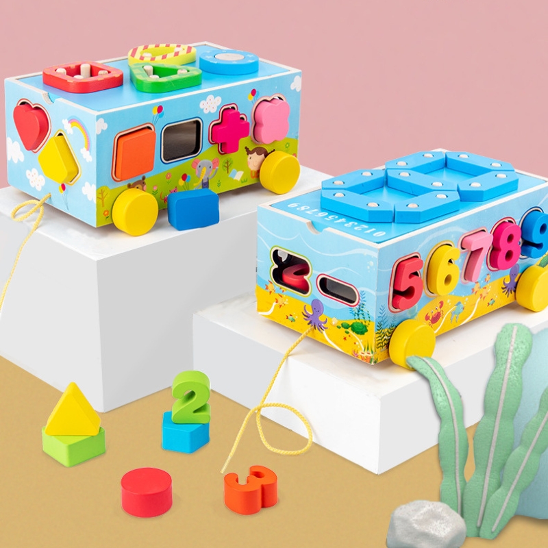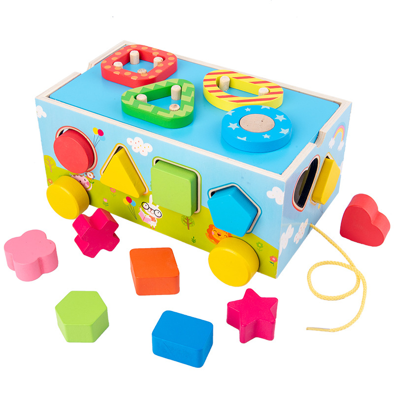 Ova vučna drvena kocka sa brojevima i oblicima osmišljena je da kroz igru pomogne detetu da razvije osnovne kognitivne i motoričke veštine.