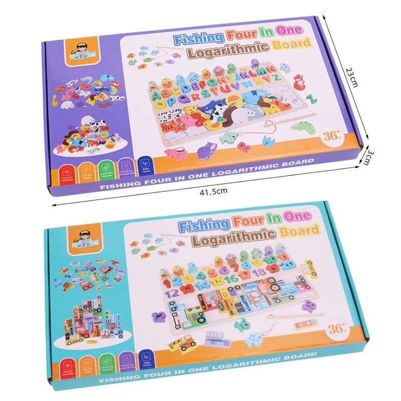 Ova drvena edukativna Montessori igračka – 4 u 1 kombinuje učenje, slaganje i magnetnu igru pecanja, pružajući deci bogato i zabavno iskustvo učenja kroz igru.
