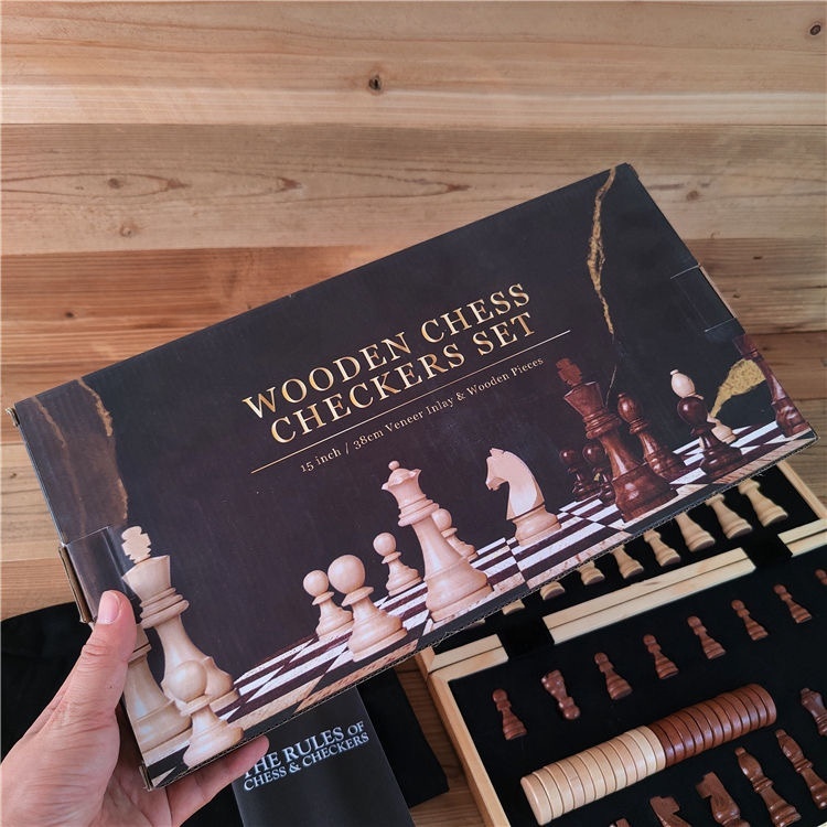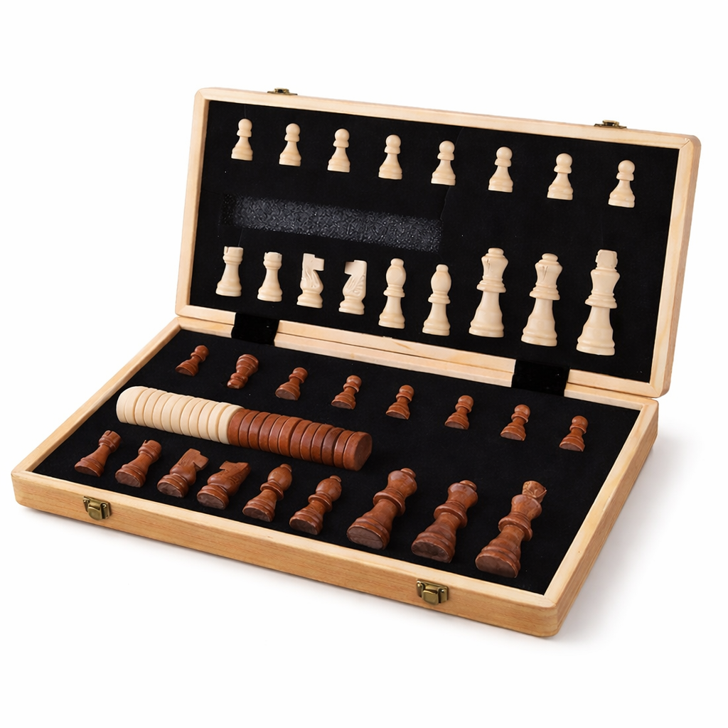 Drveni magnetni šah i dame 2 u 1 – porodična društvena igra