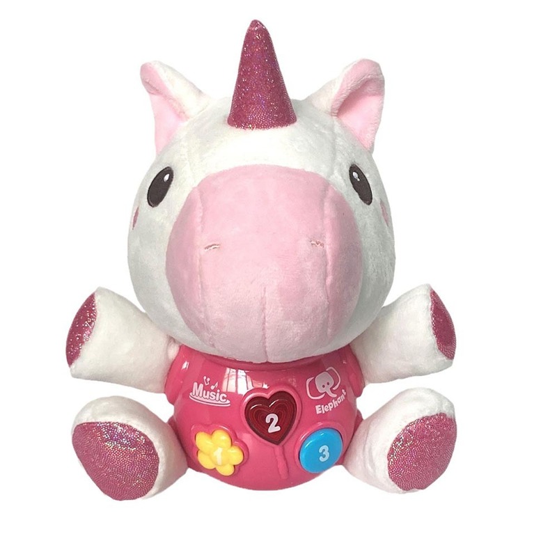 🧸 Ova preslatka plišana igračka u obliku jednoroga pruža bebi osećaj sigurnosti, nežnosti i zabave, zahvaljujući umirujućoj muzici i svetlosnim efektima.